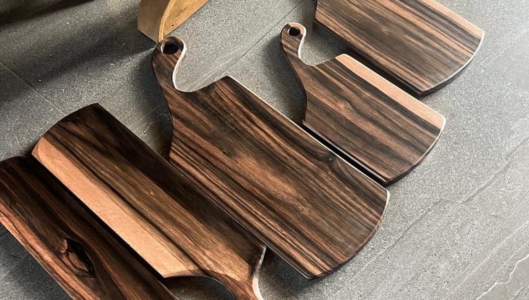 Crafted from exquisite Makassar ebony, these cutting boards are truly one-of-a-kind. Each piece showcases unique grain patterns and rich hues, making them functional works of art for any kitchen